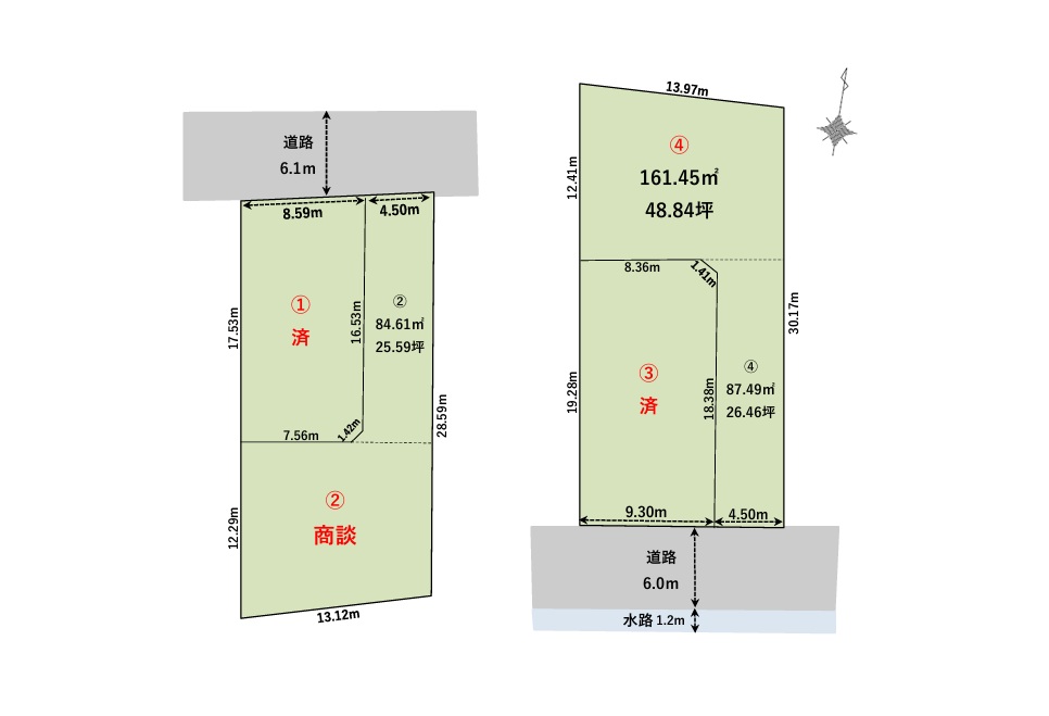 ②147.43㎡(44.60坪)、④161.45㎡(48.84坪) ②,④は有効面積