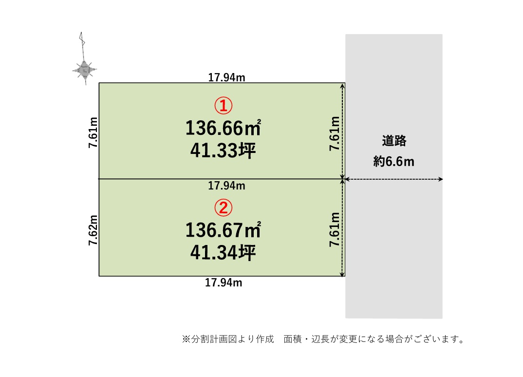 ①136.66㎡(41.33坪)②136.67㎡(41.34坪)